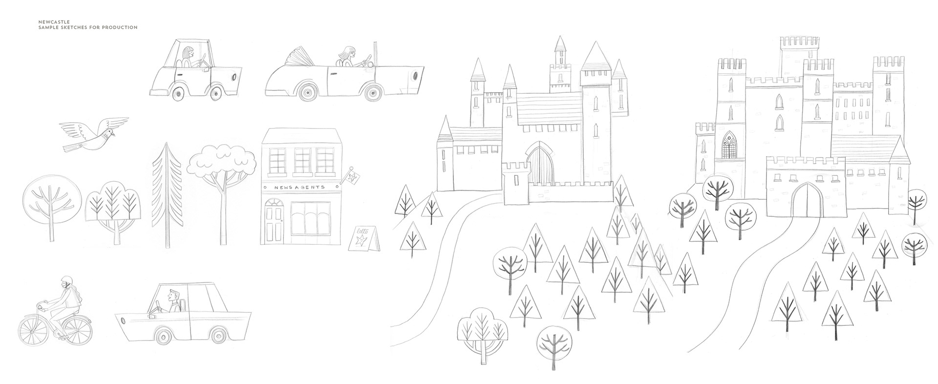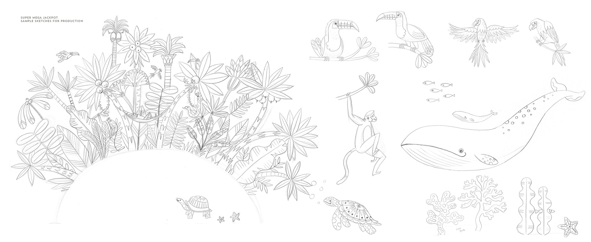 Once storyboards were finalised, I produced further detailed drawings of every character, element and environment to appear in each scene. These illustrations guided the 3D artists to recreate the world in 3D.