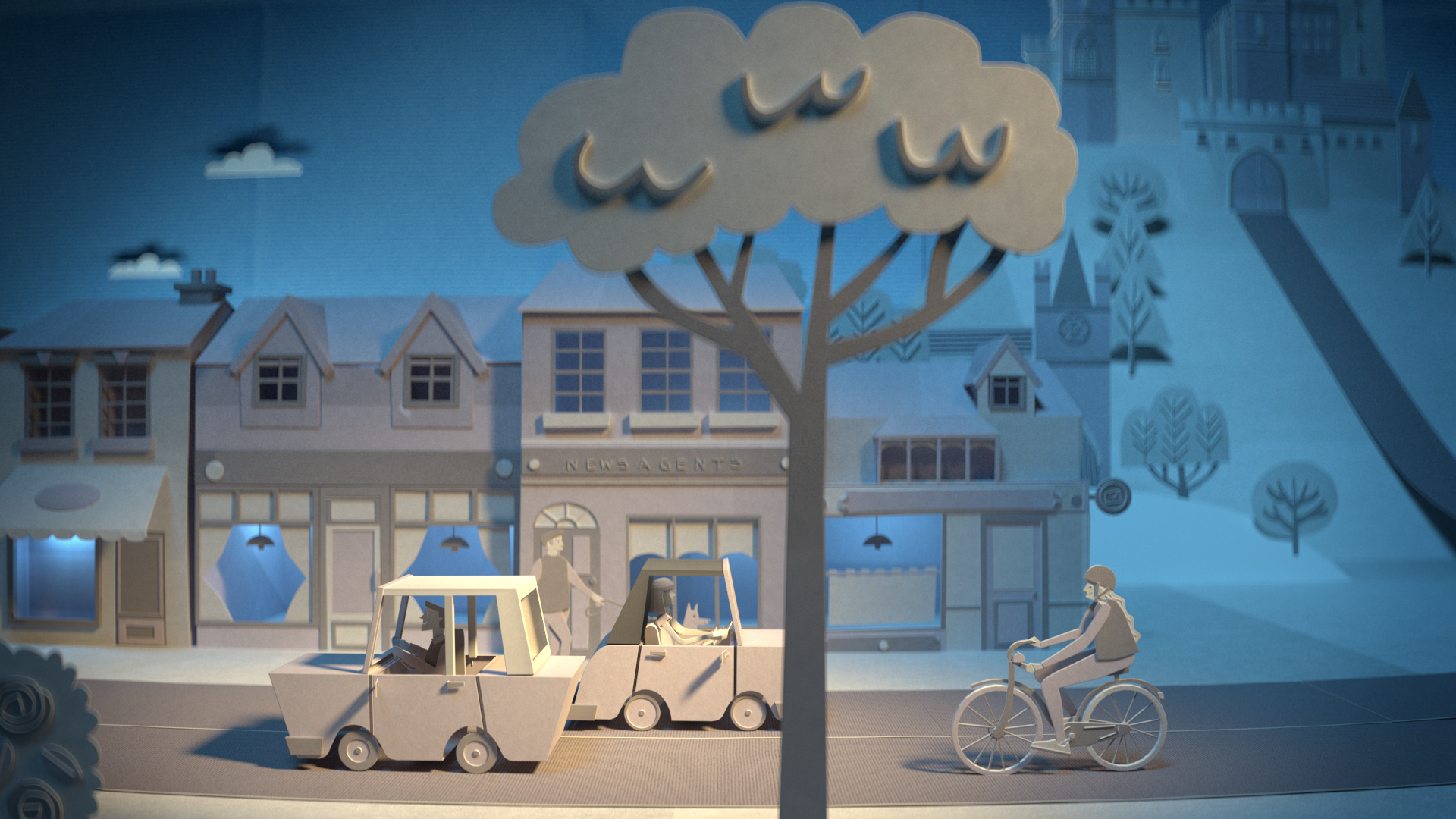 Certain animated scenes required a sequence of illustrations in order to create a convincing paper effect.