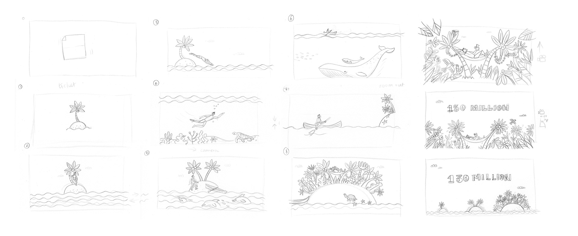 Working with the VO script, my first task was to storyboard the action for each scene.